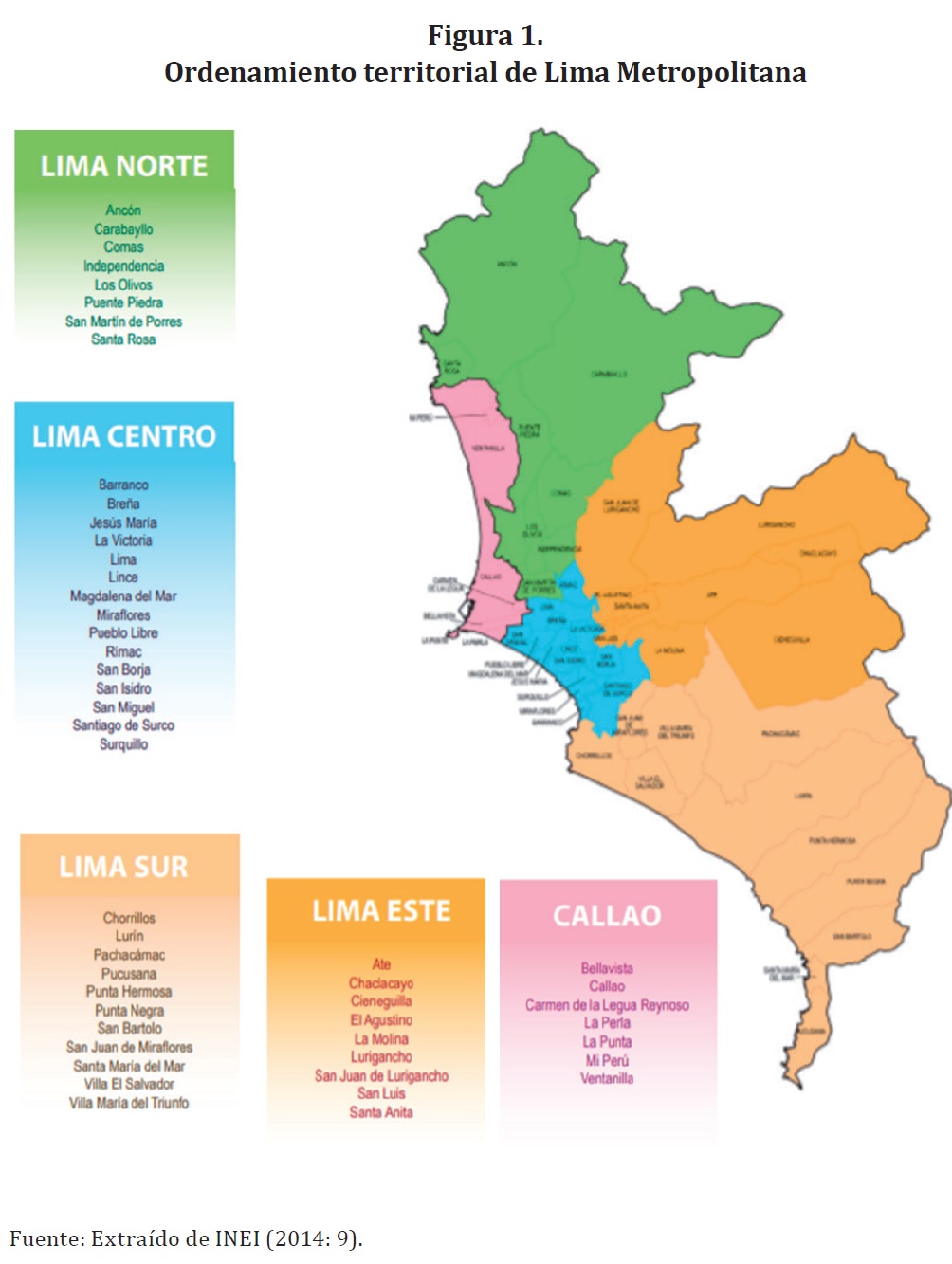 Figura 1. Ordenamiento territorial de Lima Metropolitana. Fuente: Extraído de INEI (2014: 9).