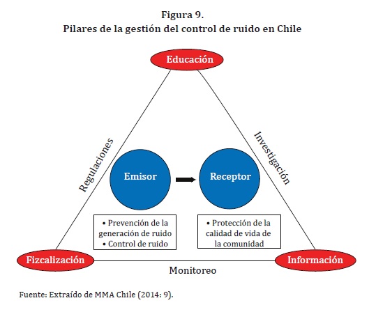 Figura 9. Ministerio del Medio Ambiente de Chile (2014: 9). Pilares de la gestión del control de ruido en Chile. En Estrategia para la gestión del control de ruido ambiental (2010-2014) (p. 9).