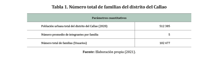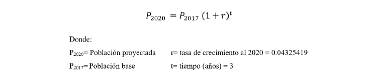 Paso siguiente, se determinó la cantidad promedio de familias que fueron encuestadas, para ello se realizó una división entre la población proyectada al 2020 y el número de integrantes por familia, que según promedio nacional son 5 integrantes por familia (Dionisio, 2018).