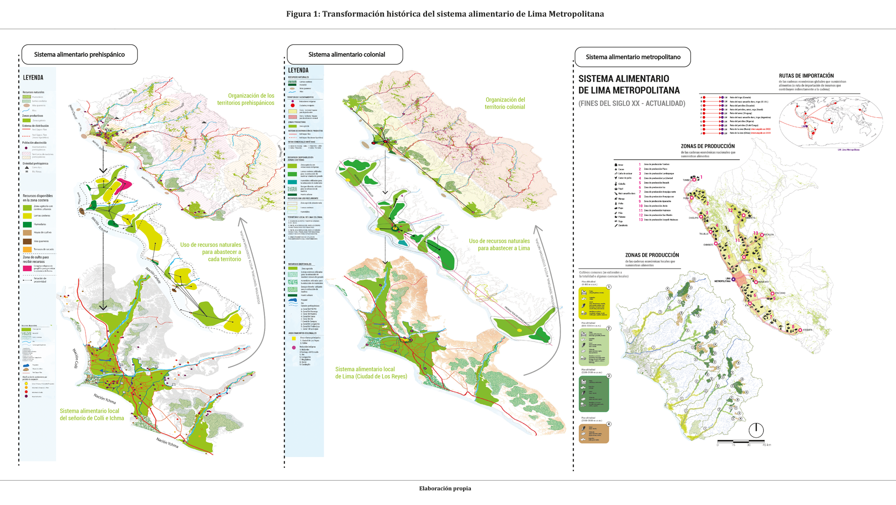 En las cuencas del Chillón, Rímac y Lurín se han desarrollado diversos sistemas alimentarios para abastecer a la población. A través de la historia, el sistema alimentario ha transitado de ser un sistema sostenido por los recursos del territorio local para abastecer a las agrourbes prehispánicas, a sostenerse mayoritariamente por los recursos de territorios externos para suministrar alimentos a Lima Metropolitana (especialmente, se han deslocalizado los procesos de producción y transformación de alimentos).
