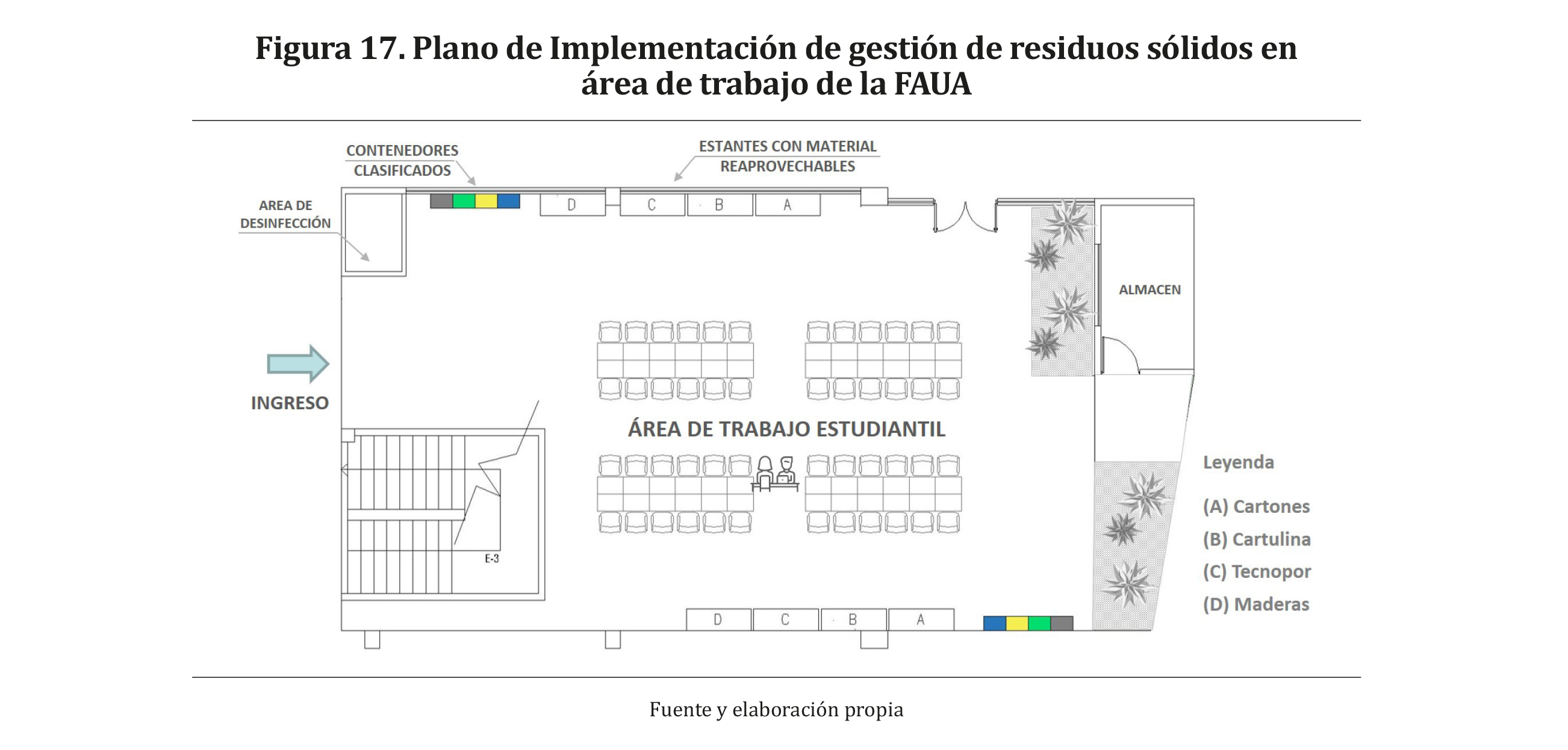 Finalmente, el plan de manejo de residuos sólidos para la Facultad de Arquitectura podría acoplarse a un plan integral de mayor escala formulado por las otras escuelas profesionales de la universidad, el cual serviría de ejemplo y modelo para otras entidades educativas.