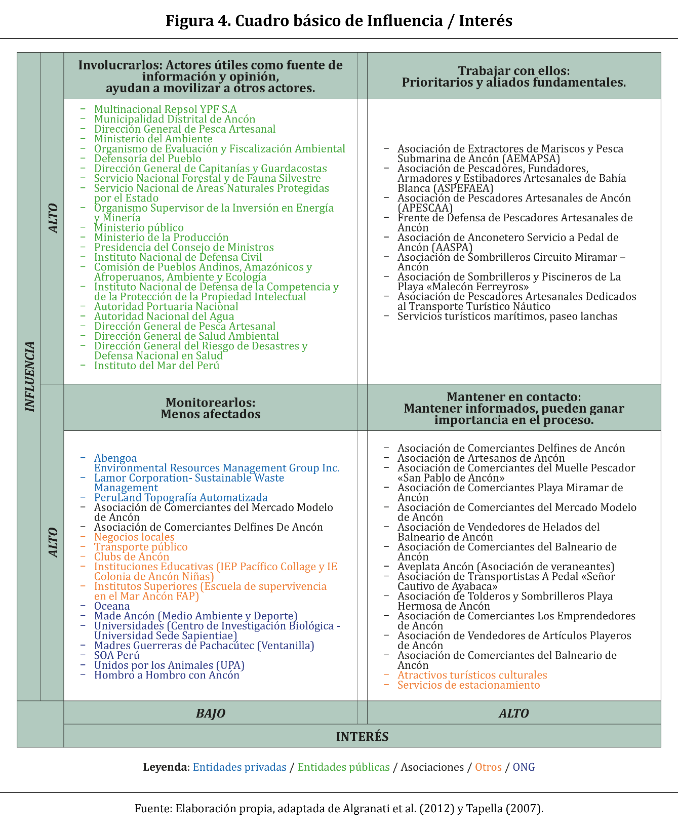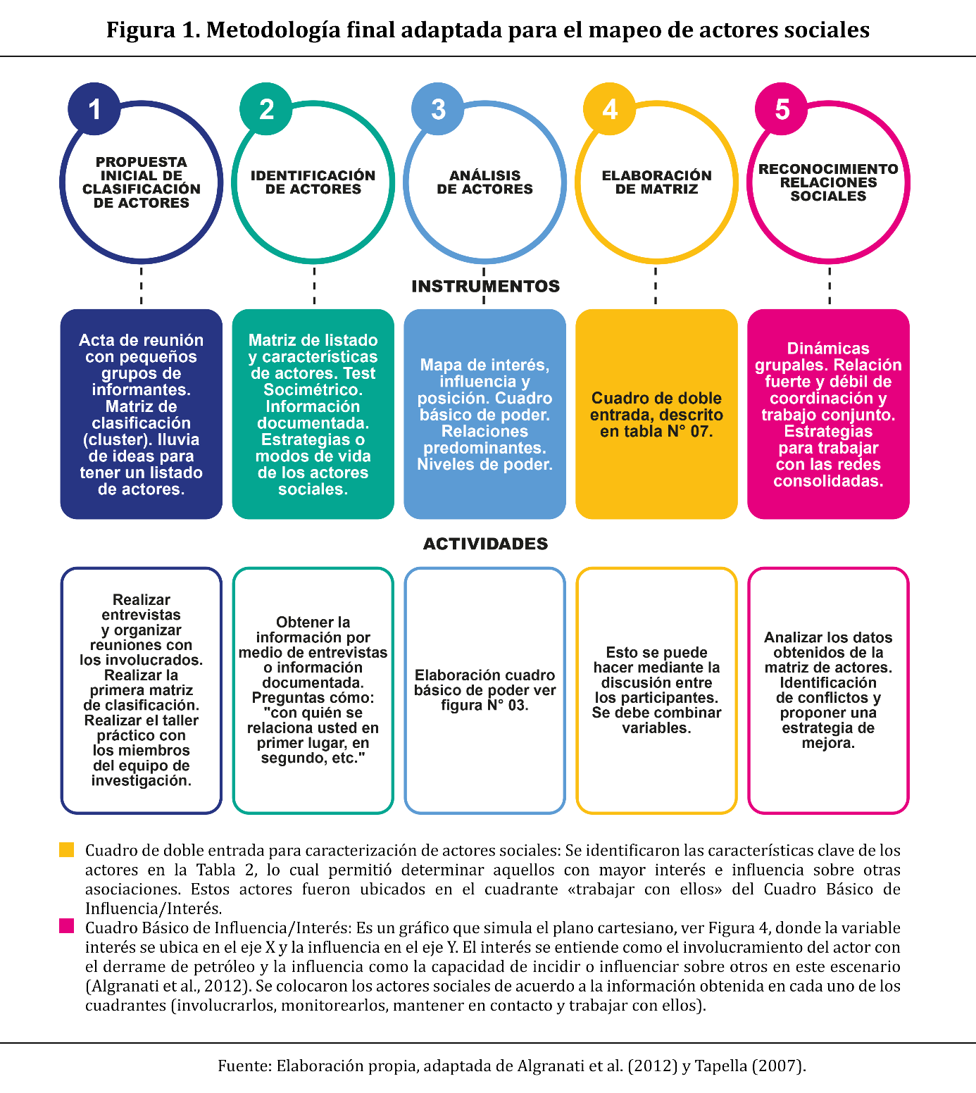 Las metodologías de mapeo de actores sociales de Algranati et al. (2012) y Tapella (2007) se adaptaron en una sola, como se muestra en la Figura 1.