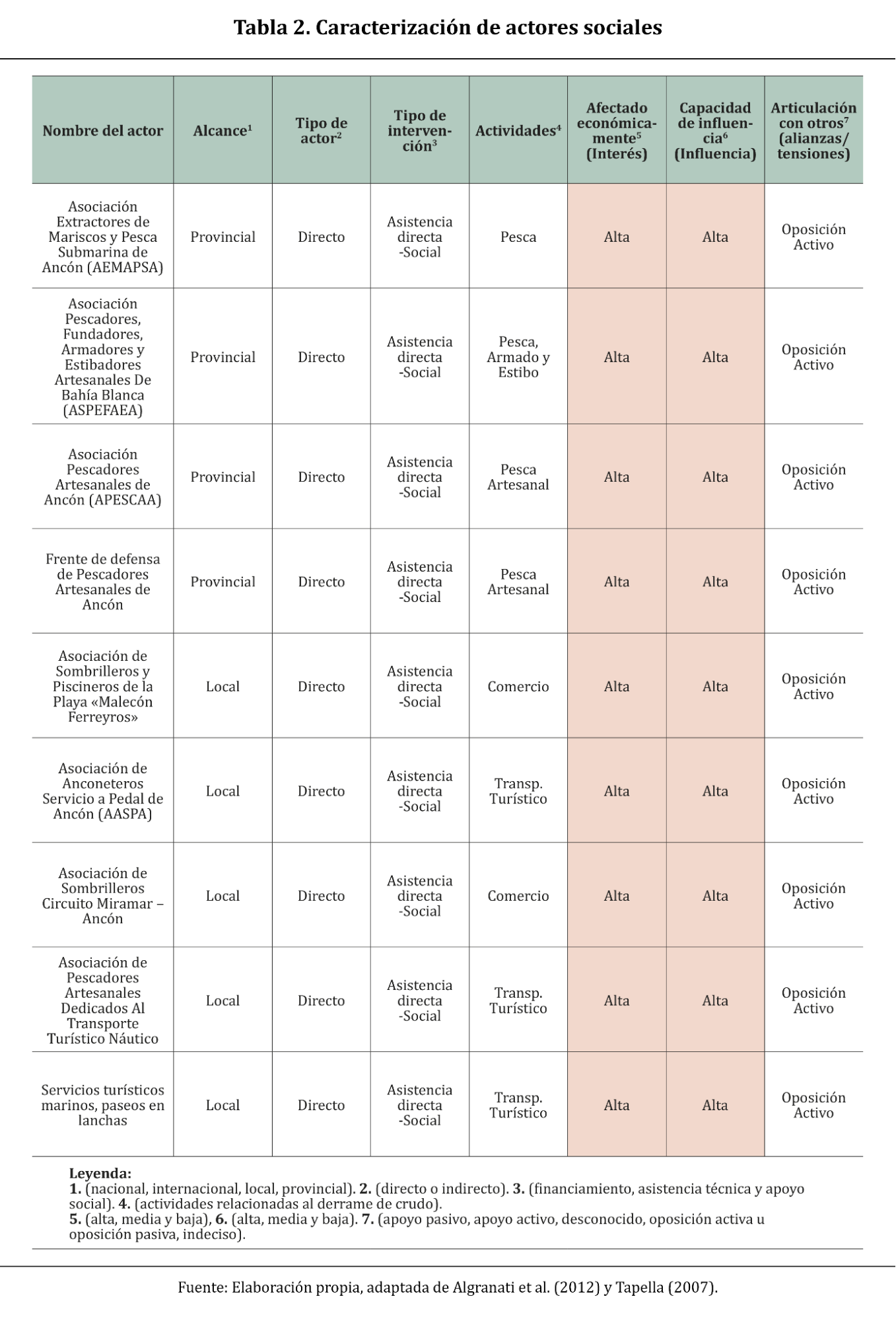 La Figura 3 muestra los distritos más afectados por el desplazamiento del petróleo derramado, y según el método cualitativo por punto, se determinó que el distrito más afectado fue Ancón (ver Tabla 1). La tabla 2 presenta la caracterización de los actores sociales.