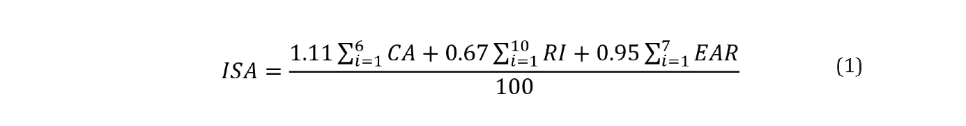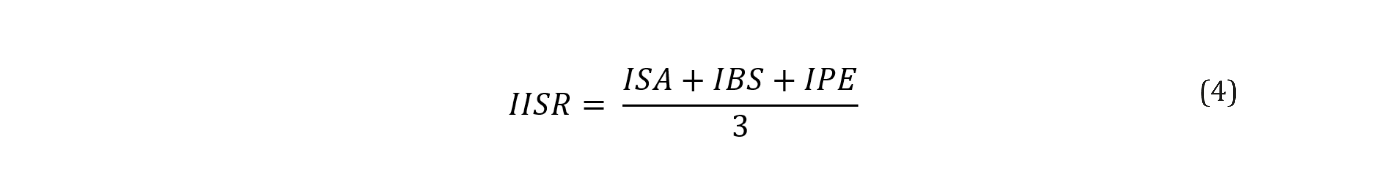 Con la información obtenida sobre las tres variables de la sostenibilidad se determinó el IISR para cada empresa, en forma individual por dimensión y en forma global. El modelo matemático desarrollado para obtener el IISR se estructuró de la siguiente manera: