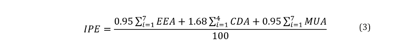 El Índice de Prosperidad Económica (IPE) se diseñó considerando la integración de la eficiencia económica del agua, el costo directo y la mitigación del uso del recurso hídrico. De igual forma que las variables de sostenibilidad ambiental y bienestar social, la estructura se generó a partir del modelo Presión-Estado-Respuesta (PER), quedando estructurado de la siguiente manera: