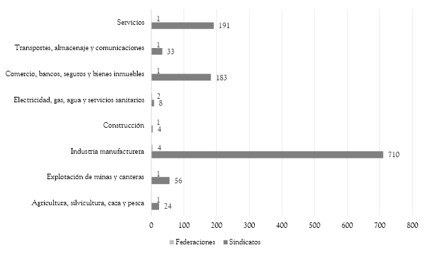 Una mirada a la información desagregada del año 1978 permite ver otros aspectos relativos a la estructura sindical y negocial que interesa destacar. En primer lugar, todas las actividades económicas registran federaciones que negocian y suscriben convenios colectivos. Con base en ello, es posible afirmar que el movimiento sindical se encuentra, al menos, estructurado con organizaciones supraempresariales —como ya se evidenciaba en 1961—. Segundo, si bien se identifican sectores con mayor densidad sindical que otros, casi todos tienen como unidad negocial preponderante a la empresa. En otros términos, la transición del modelo de negociación política hacia el intervencionismo estatal establecido en el Decreto Supremo 006-71-TR enfatizó la organización en este nivel.