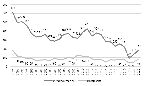 Fuente: elaboración propia con base en MTPE (1995-2022).