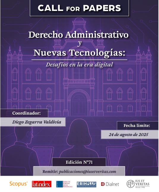 Sin perjuicio de los anteriores ejes temáticos, la Revista Ius et Veritas promueve el diálogo interdisciplinario de las distintas ramas del Derecho. Por ello, en caso de presentarse artículos que aborden temas distintos al eje central, estos serán evaluados para su publicación en la Sección General (Miscelánea).