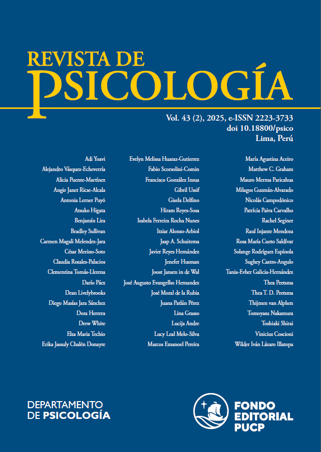 Los puntos de vista expresados en los artículos de la Revista de Psicología son de estricta responsabilidad de sus autores y no reflejan necesariamente la opinión de la Editora ni del Comité Editorial. Por lo tanto, no se asume responsabilidad de algún agravio o daño a personas o propiedades como producto de accidentes o negligencia, ni por la operación de métodos, materiales e interpretaciones escritas en esta publicación. Los miembros del Comité Revisor no tienen relación ni vínculo alguno de tipo laboral, académico, o personal con los autores.